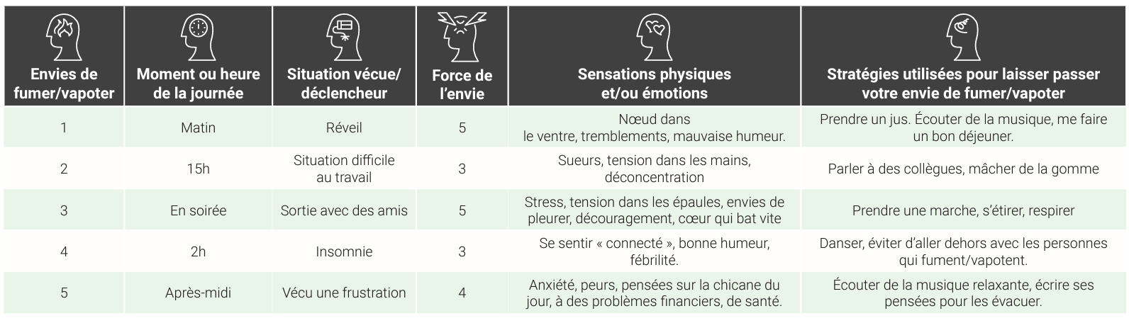 Pendant une semaine, complétez le journal de vos envies de fumer en y notant :